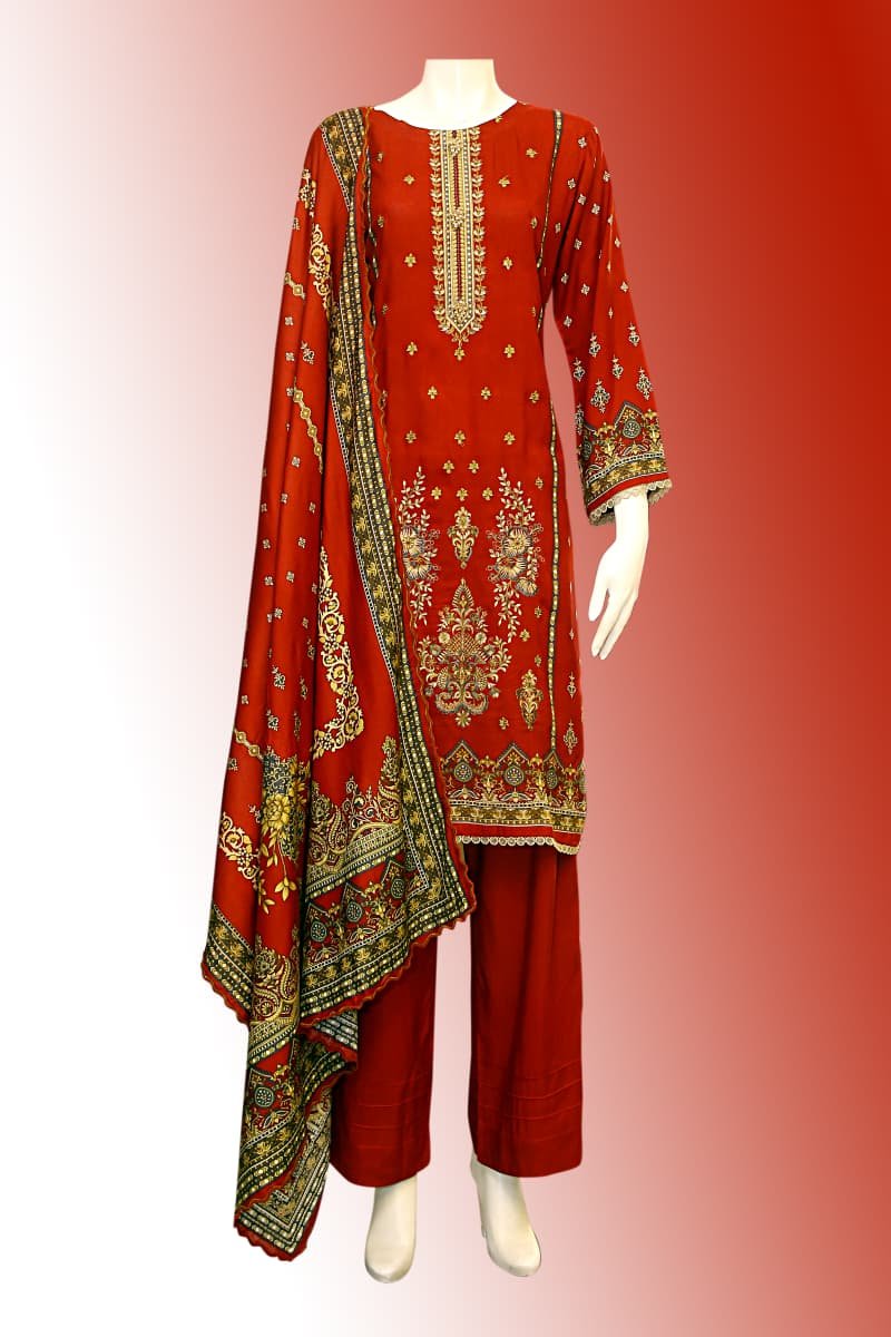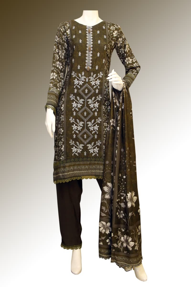 Step into effortless elegance with Poshak Mahal’s Embroidered Printed Linen 3Pc Suit. Crafted from premium-quality linen, this three-piece set features delicate embroidery and a beautifully printed design that adds charm to any outfit. Perfect for casual outings or semi-formal gatherings, it combines comfort, style, and a lightweight, breathable feel.