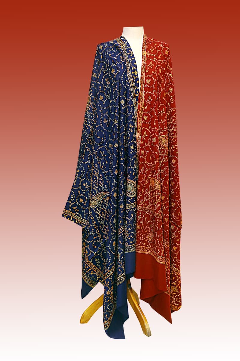 Add a touch of artisanal elegance to your wardrobe with Poshak Mahal’s Wool Hand Embroidered Shawl.